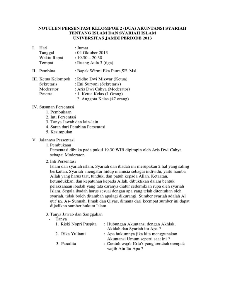 Cara menghilangkan 'product activation failed' ms.word. Pengertian notula notula adalah catatan tentang rapat yang telah dijalankan, sedangkan orang yang melakukan pekerjaan sebagai pencatat disebut notulis. Dalam debat bahasa inggris ada juga yang disebut dengan chairperson yaitu orang yang memimpin jalannya debat, dan ada juga time keeper yaitu orang yang bertugas menghitung waktu bicara debaters. Notulen adalah sebuatatan tentang perjalanan suatu kegiatan baik rapat, seminar, diskusi, atau sidang yang dimulai dari awal sampai akhir acara yang ditulis oleh seorang notulis, yang akan dilaporkan oleh ketua kegiatan, dan akan dipertanggung jawabkan suatu saat pada seluruh anggota atau peserta acara. Penyampaian argumentasi ini dimulai dari tim pro, lalu tim kontra, kemudian diakhiri oleh tim netral.